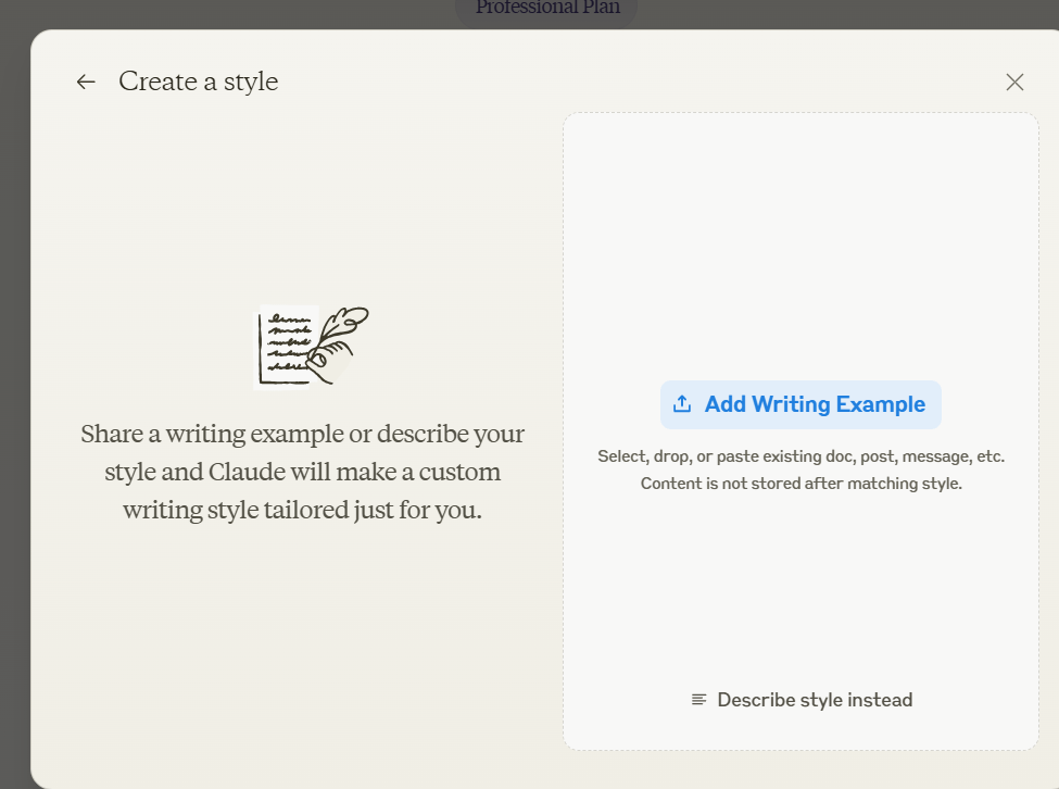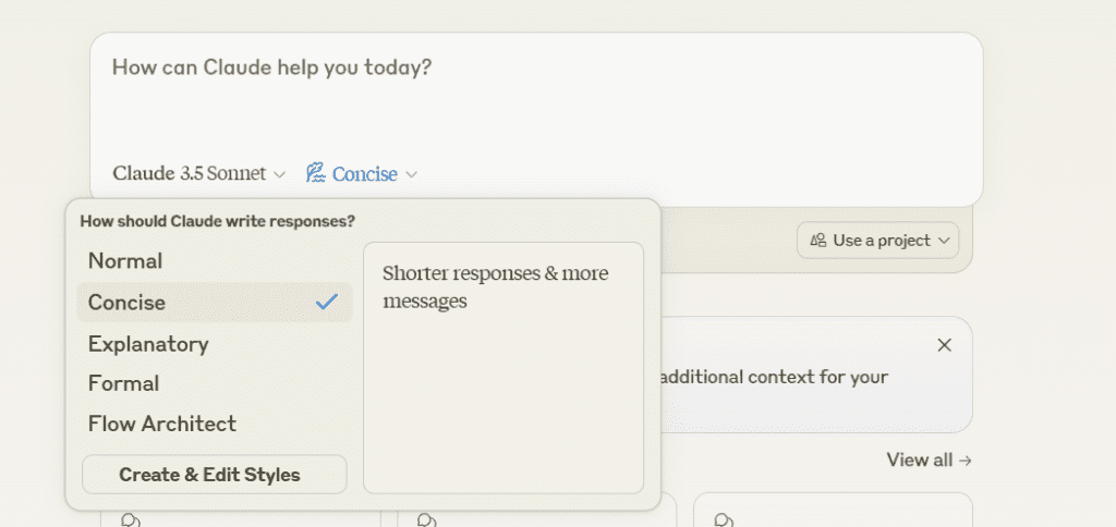 The style selector appears as a “Choose style” dropdown option in Claude’s interface. Think of it as a personality switch that helps Claude adjust its communication approach to better match your needs.