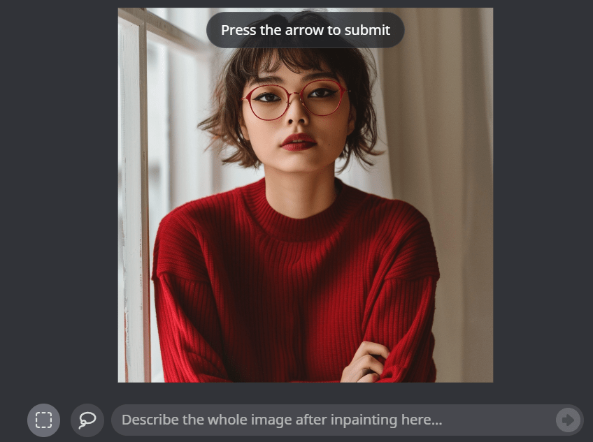 2. Add Prompt ;Create an image of a 10 year old girl wearing Red pullover –cref (Image link) — CW 100.