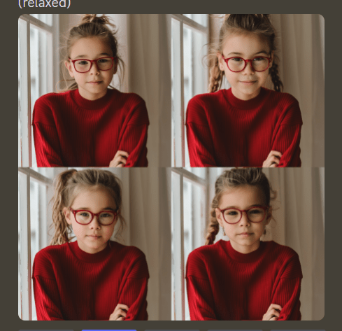 This is the grid I obtained after the last step, and as you can see, the background, pullover design, and eyeglass frames are the same. You can upscale the required image.