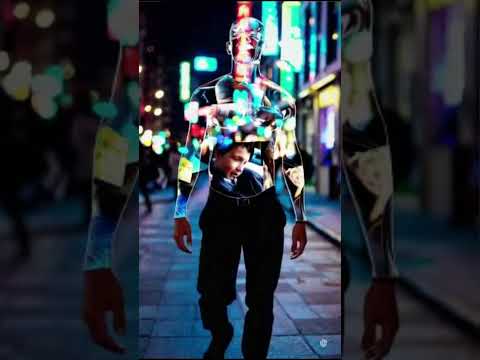 Walking Memory Montage :A man walking through a busy street, but instead of skin, his body is covered in layers of transparent, shifting images—scenes from his own past. As he moves, the memories flicker and rewind, some moments repeating endlessly.