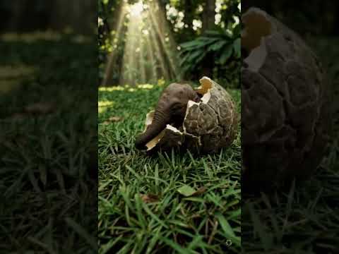 Cute baby elephant that comes out of a dinosaur egg, realistic .
