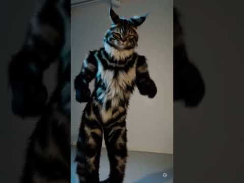 Humanoid cat, Maine coone, dancing on tik tok dances.